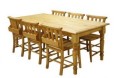 アイロスジャパン製カントリー家具、1800テーブルとチャーチチェア6脚のダイニングセットです。 すべてパインムク材を使用しています。 塗料はドイツ<オスモ社>の無公害自然塗料によるオイル仕上げです。 使えば使うほど味が出るのが一番の特徴です。 アメ色になるまで長く長くパインの良さをお楽しみください。