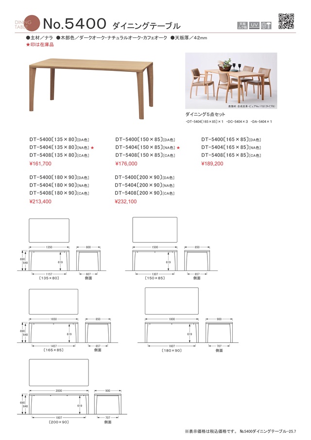 | 製品名 | 浜本工芸 ダイニング7点セット No.5400 DT-5400(1650) /DC-5400 DA-5400 ナラムク材 |
